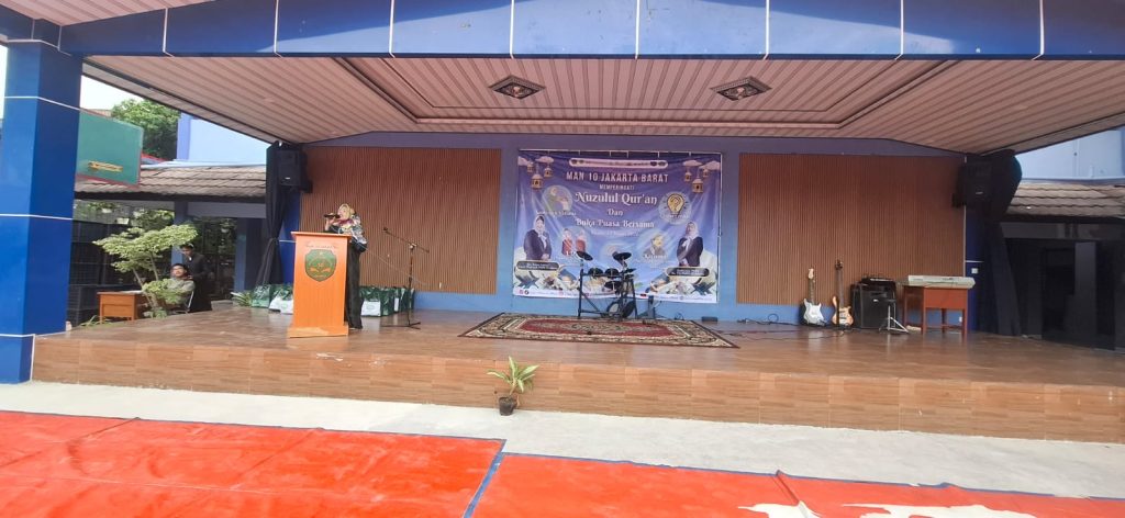 Kepala MAN 10 Jakarta Barat, Dra. Hj. Rahmi Indriani, dalam sambutannya menyampaikan bahwa kegiatan peringatan Nuzulul Qur’an dan buka puasa bersama ini merupakan bagian dari upaya madrasah dalam memperkuat nilai-nilai keislaman di kalangan siswa.